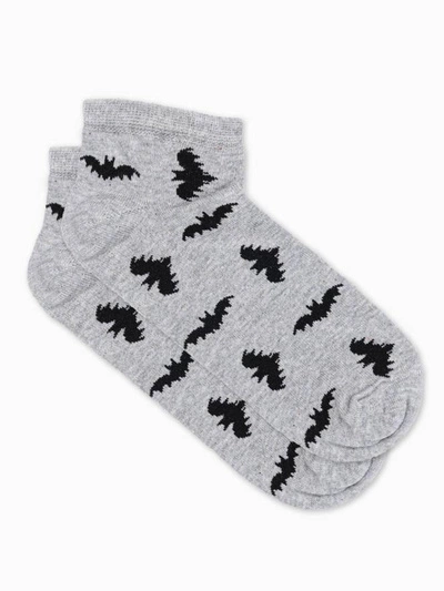 Skarpety męskie krótkie ze wzorem nietoperzy - szare V14 177U