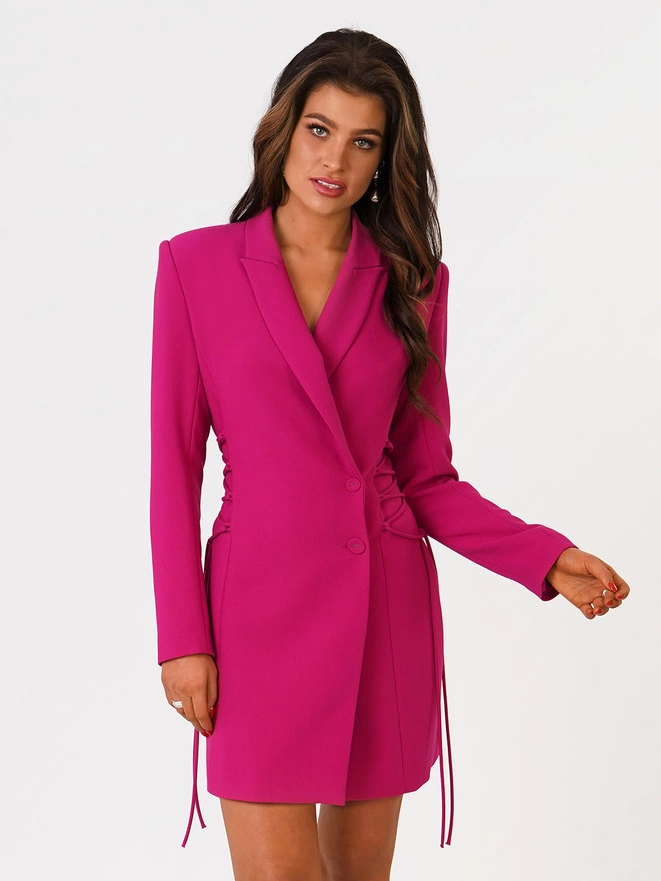 Sukienka damska mini z dekoltem w serek i szerokimi ramiączkami IMANY DLR208 - fuksja